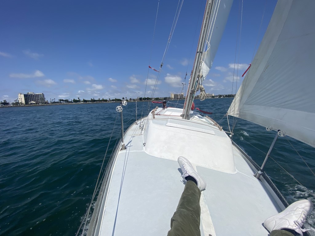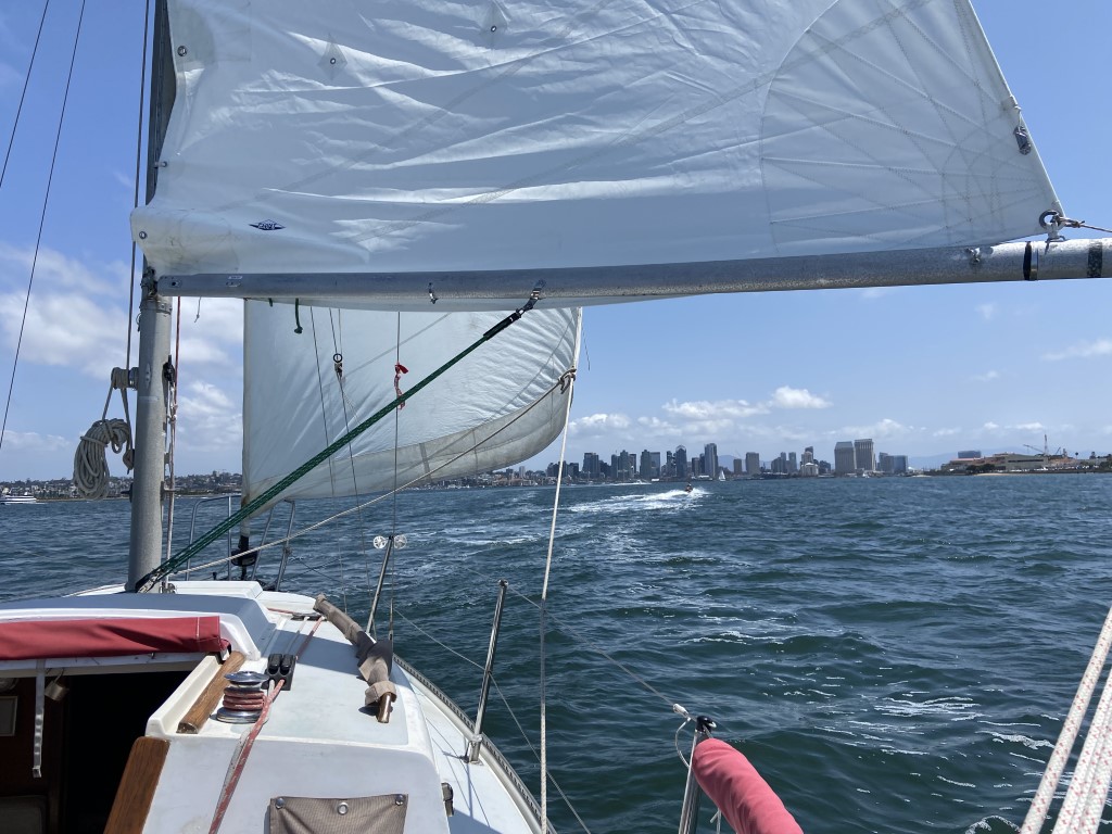 Went for a nice sail today around San Diego Bay. Winds were 10kts steady from the west, with gusts to 15kts. Great time practicing sail trim "racing" every other sailboat we saw. We got going pretty fast, sometimes heeling 30 degrees or more.